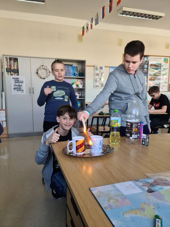 Na Kółku Geofizycznym "Sikorka" wykonywaliśmy huśtawkę ze świeczki oraz domową lampkę lawę przy użyciu dostępnych materiałów z kuchni.